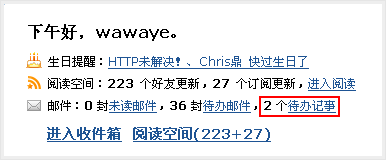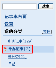 设置成功后,可在记事本右边的分类列表和邮箱首页中看到待办日志的数目,并可直接点击进行查看和管理。