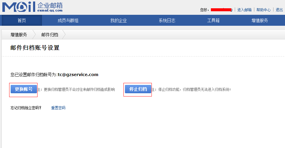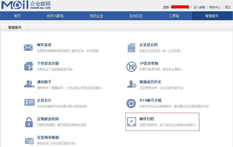 2014年2月5日——企业邮箱收费版增值功能:邮件归档——设置归档帐号,永久保存企业邮箱往来邮件