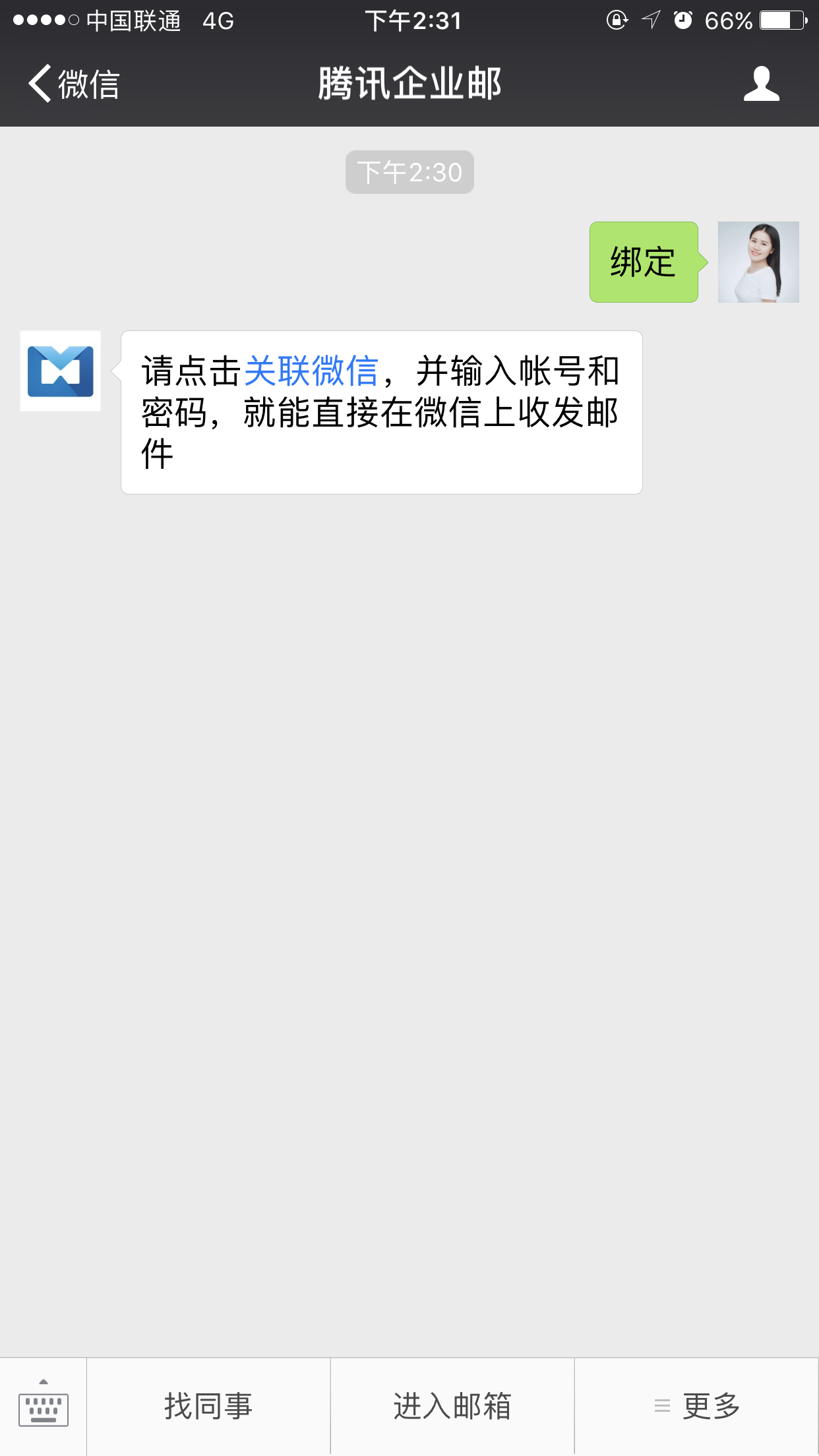 “腾讯企业邮”公众号改版,增加“绑定/解绑微信”和“客户端授权密码获取”功能,并对“找同事”界面做了优化