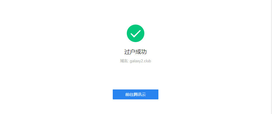 2、点击域名后跳转到域名详情页面,点击“前往腾讯云”