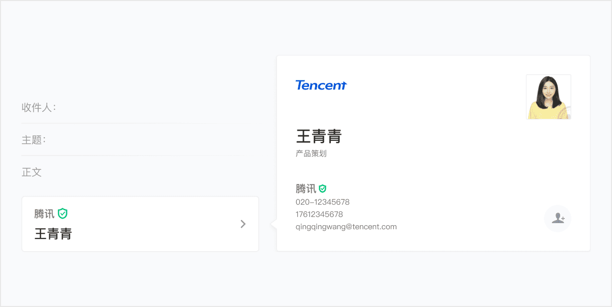 成员在发信时,可以使用「默认名片」作为邮件签名
