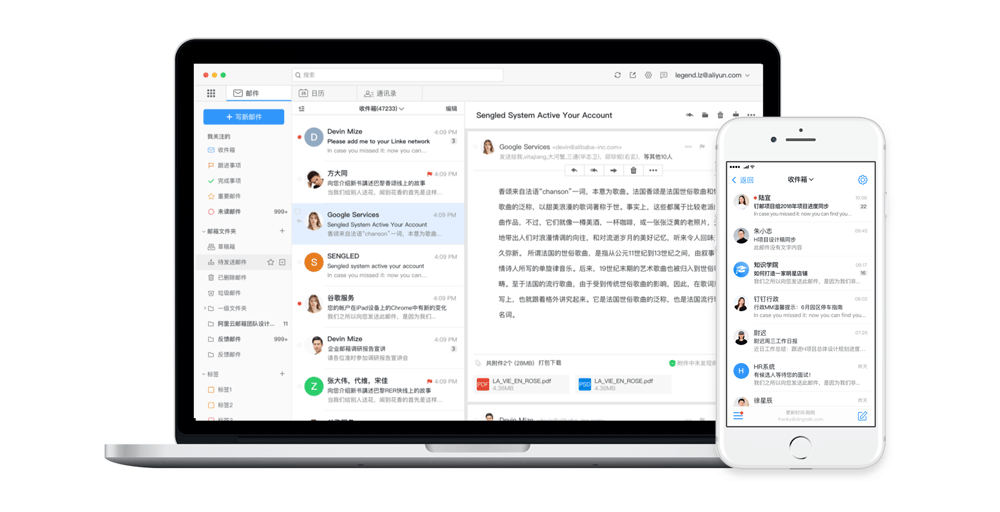 打通邮件系统和公司组织架构、IM,发邮件跟聊天一样简单、高效