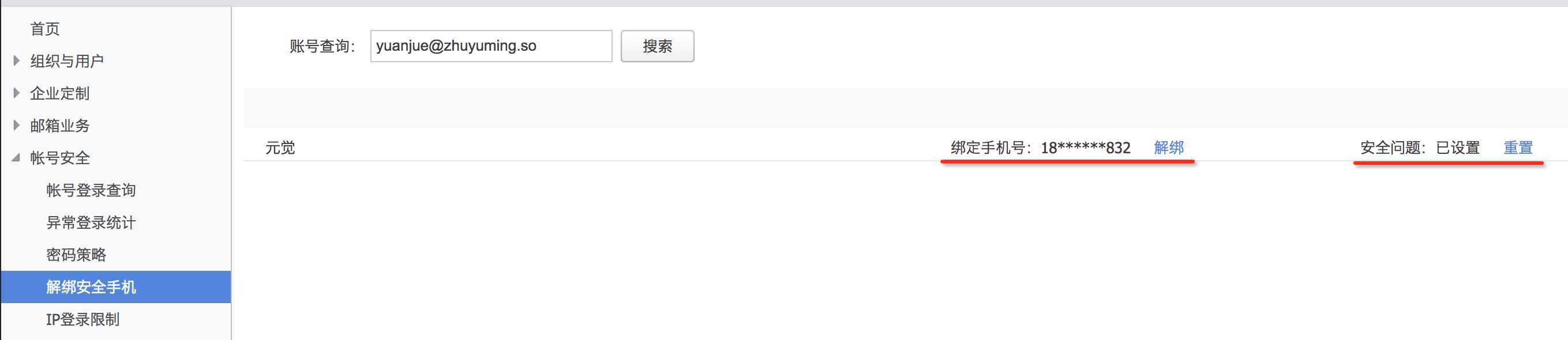 普通帐号目前也已经在逐步放开异常情况二次验证策略,放开后,若登录时出现异地登录验证的问题答案不记得,或者是绑定的安全手机号码失效,可联系公司邮箱管理员登录postmaster进行安全问题与安全手机重置即可。