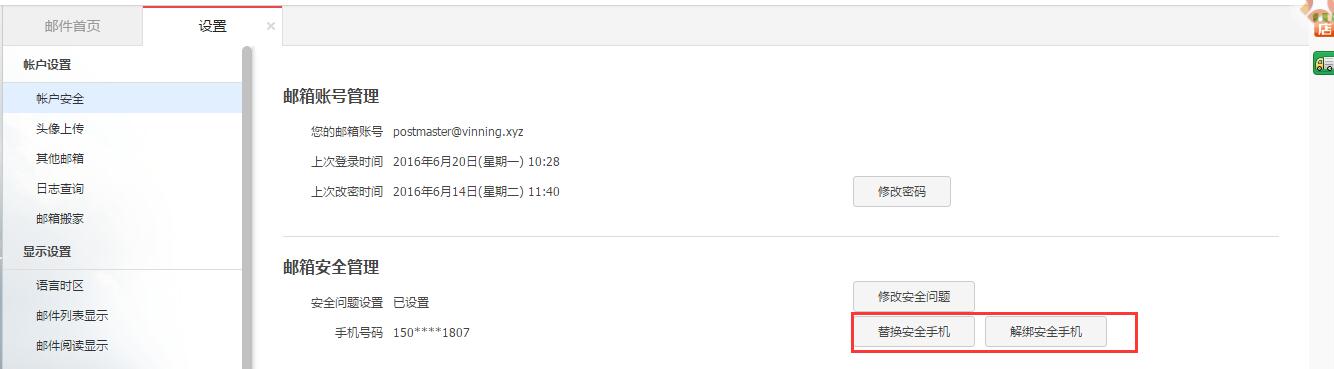 若绑定的安全手机已经失效,可登录postmaster帐号后,重置掉安全手机重新绑定,或者是进入邮箱直接更换即可。