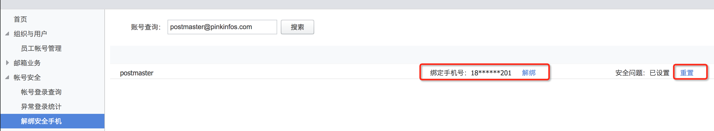 如果安全问题不记得答案 ,手机号码又不能用了,就需要公司的邮箱管理员登录postmaster到帐号管理,找到此帐号编辑里面重置帐号密码. 并且提醒管理员可以到帐号安全里面把安全问题与手机号码解绑,重新登录重新绑定即可.