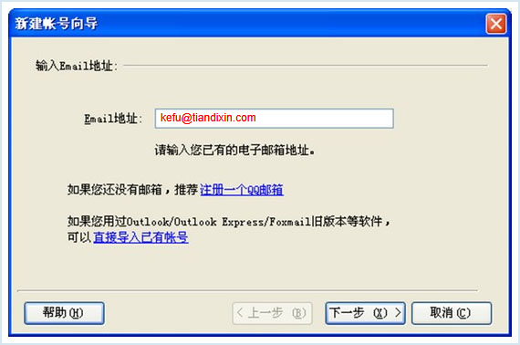 4、填写邮箱帐号:support@dns110.com(换成您自己完整的邮箱地址)