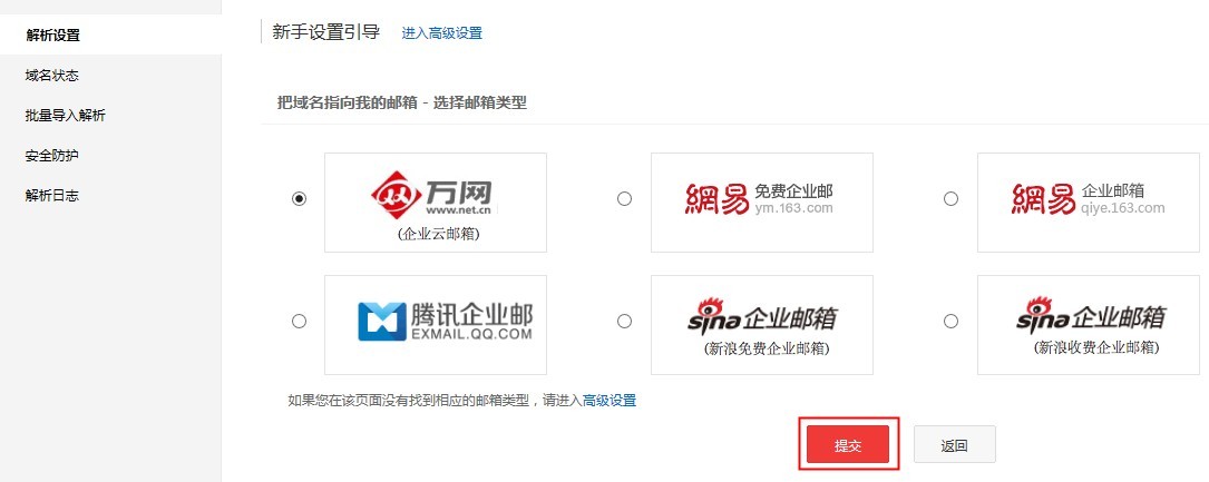 5、选择您购买的企业邮箱类型,点击【提交】即可。