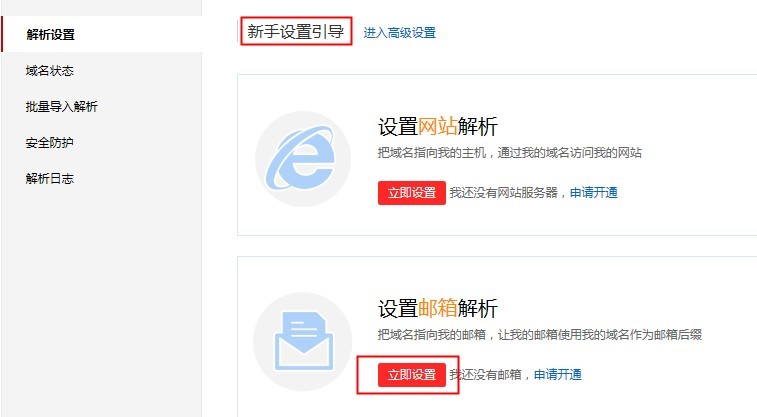 4、如果您之前没有设置过邮箱解析,也可以点击【新手引导设置】进入新手设置引导,进行快捷邮箱解析设置。