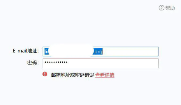 而实际上Foxmail的报错是不太友好的,误导了用户。这个部分应该输入的是客户端专用密码。而不是网页登陆时的用户名和密码。