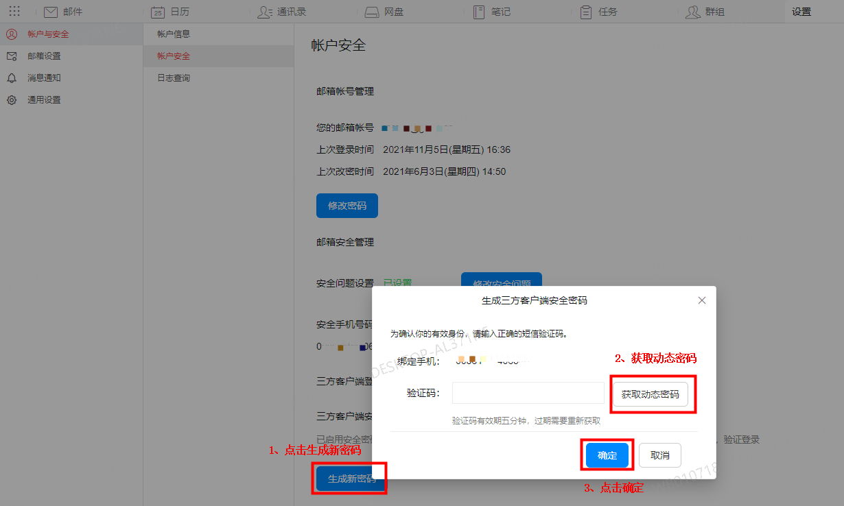 点击生成新密码->获取动态密码->输入动态码后点击确定