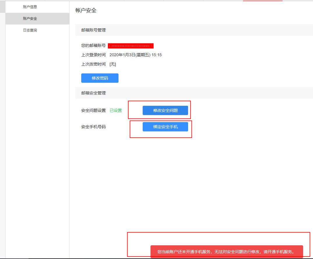 PS:修改安全问题答案需要绑定手机号码。