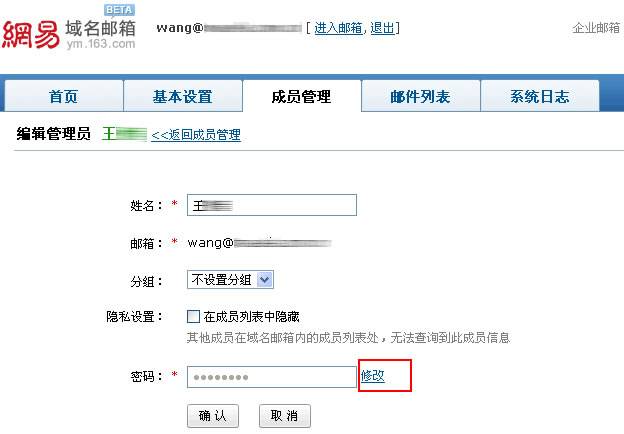 成员帐号是由管理员创建的,在创建后,无论是管理员还是成员本身,都不可以直接修改。一种解决方法是,管理员先删除掉此帐号,再重新创建一个。