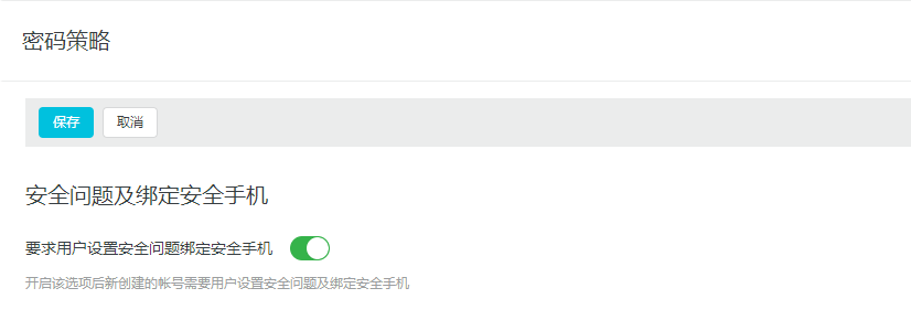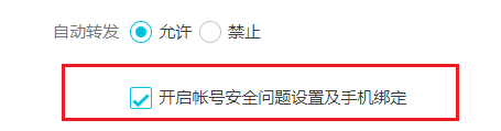 2、检查安全问题和安全手机 总开关 是否开启,未开启的点开启后 保存 。