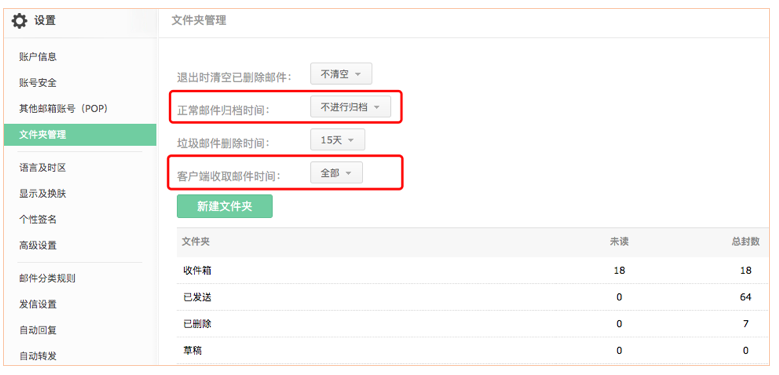 1、请确保已经将“收取选项”设置为“收取全部的邮件”,否则将只能搬最近 30 天的邮件。设置 —> 文 件 夹 管 理 —> 正常邮件归档时间“不 进行归档”,客户端收取邮件时间“全部”。