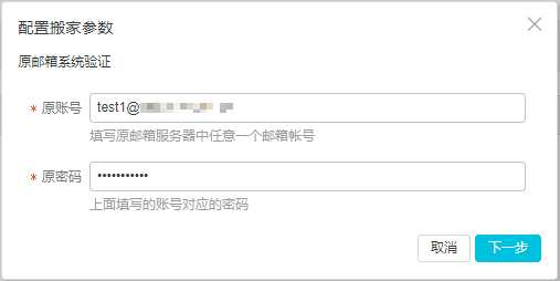 待搬家账号密码 | 可选 | 原邮件系统待搬家账号对应的密码。 |