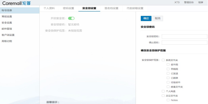 2、请检查是否已关闭安全锁,安全锁是锁住某些不想同步的文件夹邮件,建议关闭,避免数据同步不全。账号信息—> 安全锁设置—> 关闭。