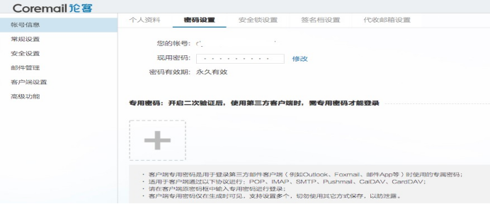 1、请确保已经将“专用密码”关闭。账号信息—> 密码设置—>关闭
