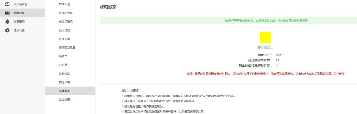 1)邮箱账户搬家结束前,请勿修改账户原邮箱登录密码;
