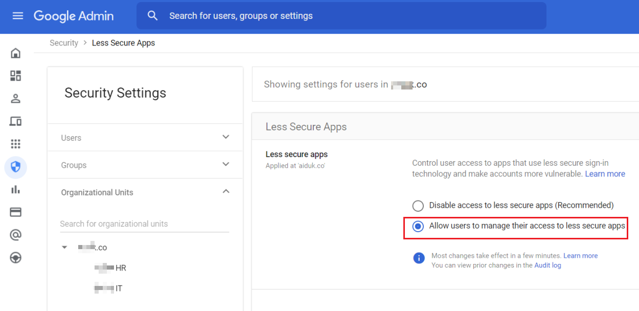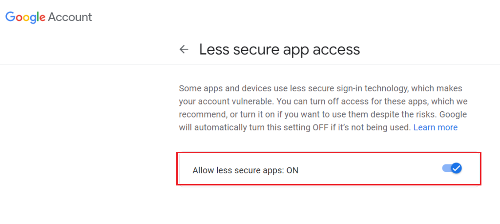 3、请确保开启 “安全性较低的应用过的访问权限”。