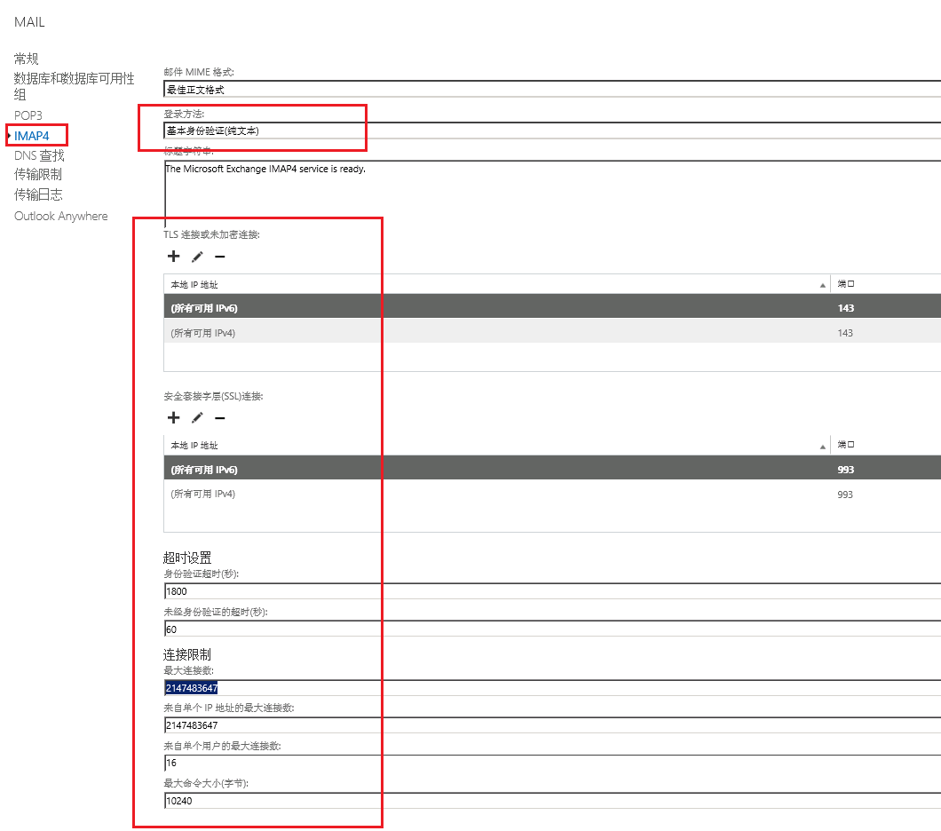 2、请确保imap/pop服务的登录方式和登录限制是否设置正确。