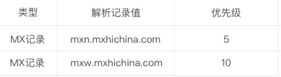 ③ 进入解析页面,在【邮件交换记录】处,记录类型里选择:cname记录和TXT记录,然后复制主机记录、记录值后粘贴到对应表格,修改MX记录。其它保持默认。