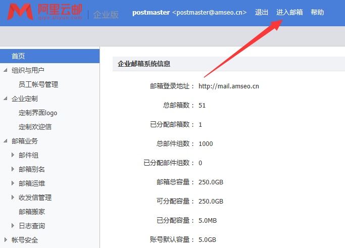 3、点击右上角“进入邮箱”,第一次进入邮箱,可能需要加载一段时间,耐心等待即可