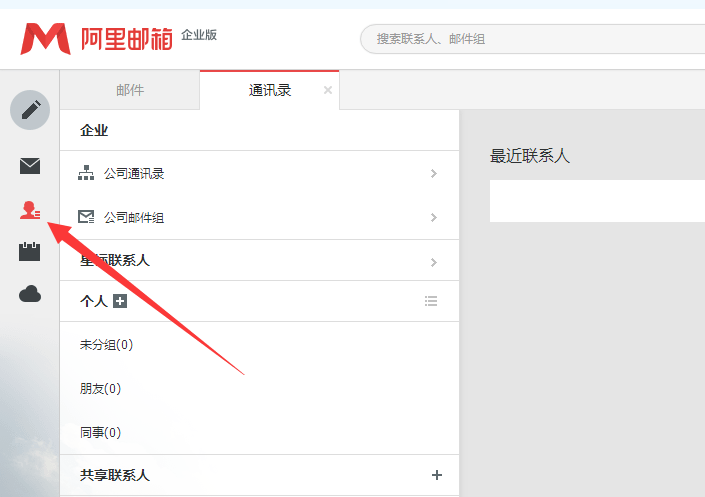 4、登录成功,进入邮箱主页,点击左侧的【通讯录】选项;