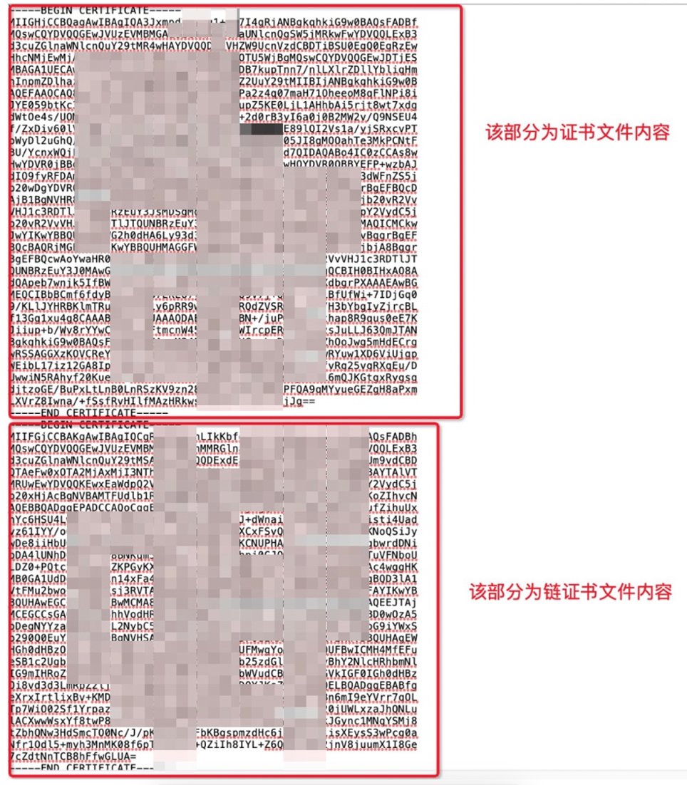 第二部分-----BEGIN CERTIFICATE-----和-----END CERTIFICATE-----是链证书文件内容。