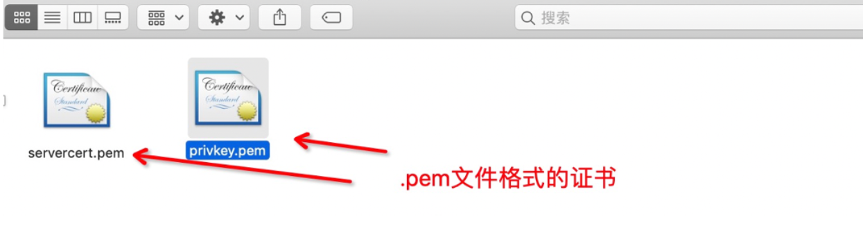 若您获取的是.pem文件证书,则只有一个私钥和1个证书文件,证书文件内容分为两部分,使用文本文档打开证书文件,