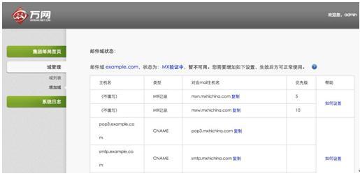 MX 验证中 | 正在进行邮件域的MX信息查询,出现这个状态可能是MX还没有增加或者暂未生效。 |