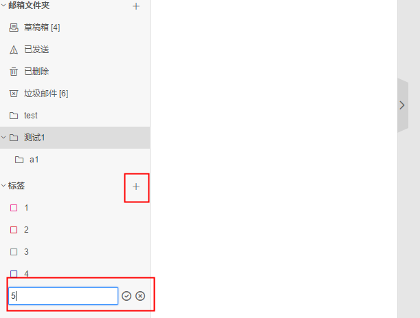 1、登录邮箱后,点击左侧“邮件”,在标签管理界面,点击“+”号,输入标签名称保存。