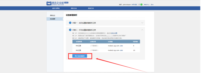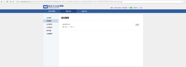 11.到这一步就设置完成了,自动跳转到企业邮管理界面;