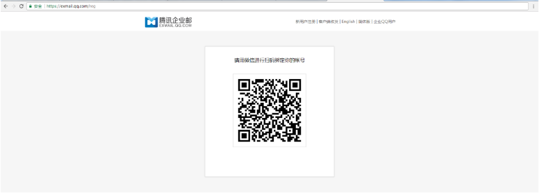 15.该用户收到短信后,浏览器进入https://exmail.qq.com/reg,用微信扫码绑定微信(之后可以使用微信登录邮箱);