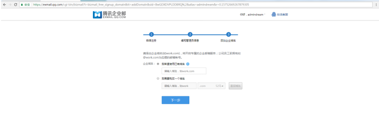 这里我选择的是使用已有域名,输入域名后点击下一步即可;