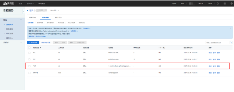 19.为了提升域名邮箱发送外域(@qq.com以外的邮箱)邮件的成功率,建议您给自己的域名设置一条TXT记录来避免这种情况。