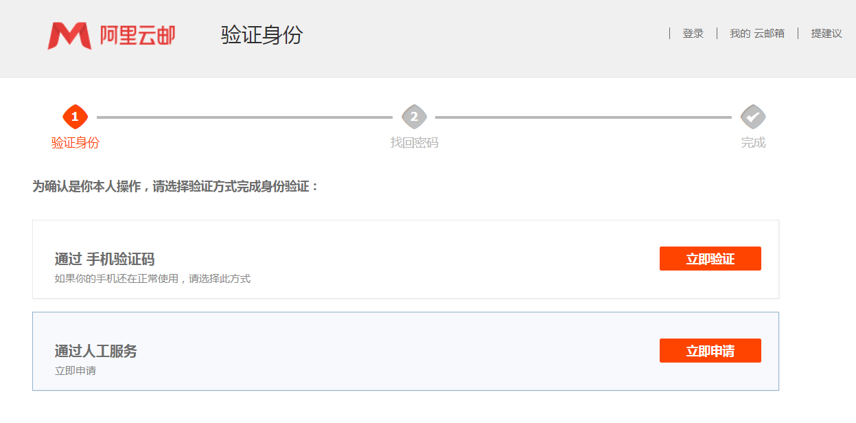 3、选择其他验证方式后选择通过人工服务方式进行找回。