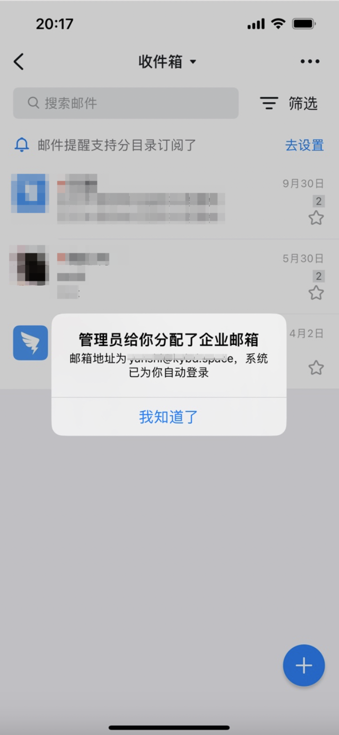 点击邮箱应用即可看到被分配的邮箱已登录。