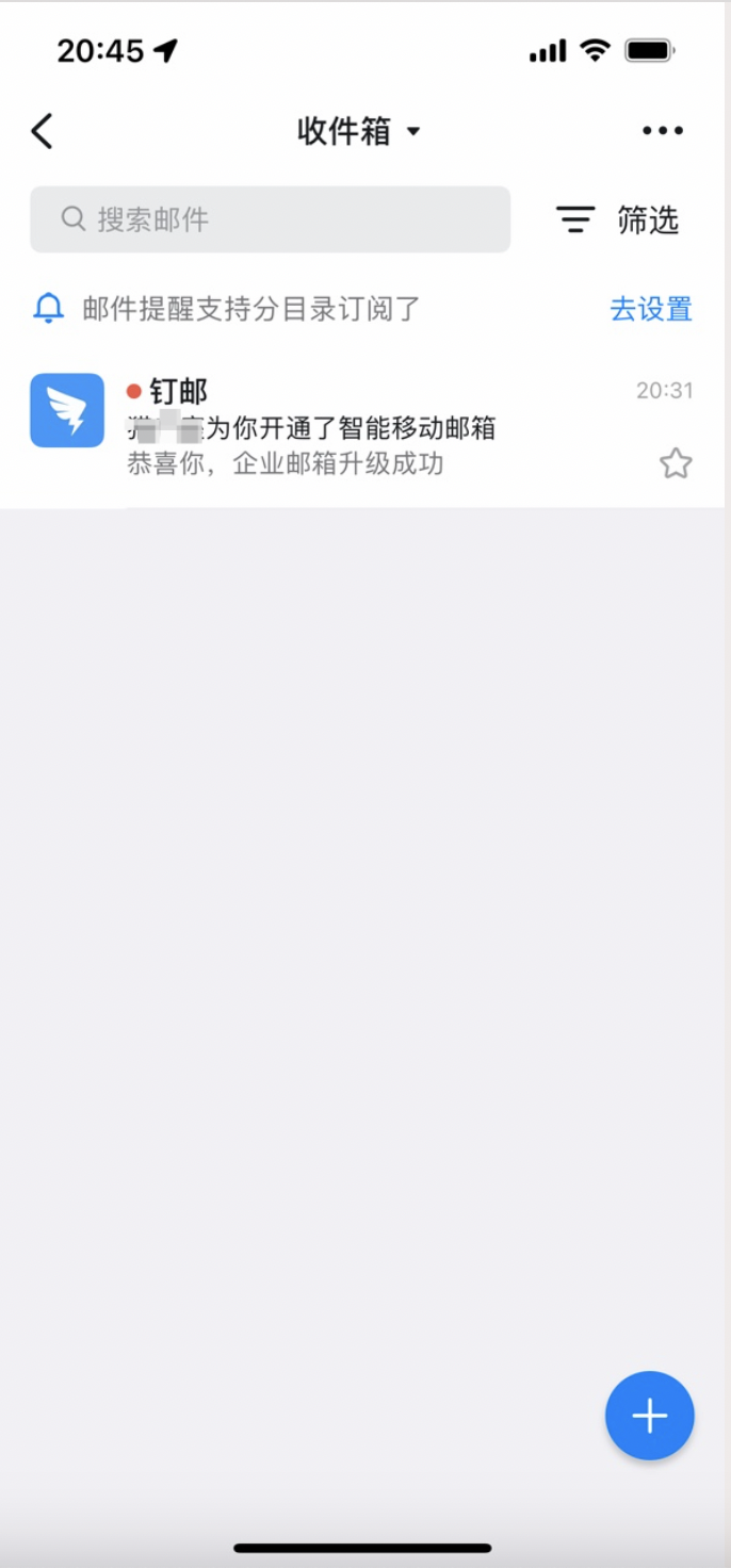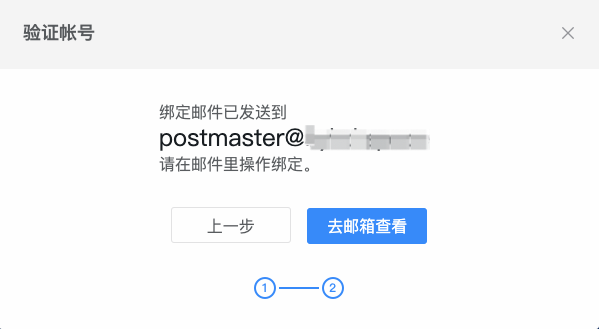钉邮与企业邮箱域绑定成功后,系统会发一封绑定确认邮件至企业邮箱的postmaster管理员邮箱中,点击去邮箱查看。