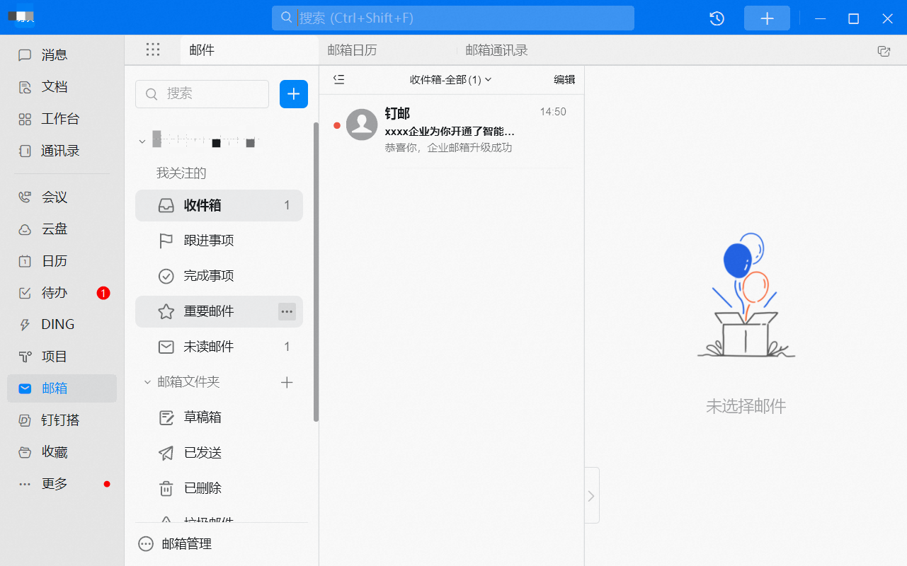 最终绑定成功后,钉邮此处可以看到绑定的阿里邮箱域名等信息。