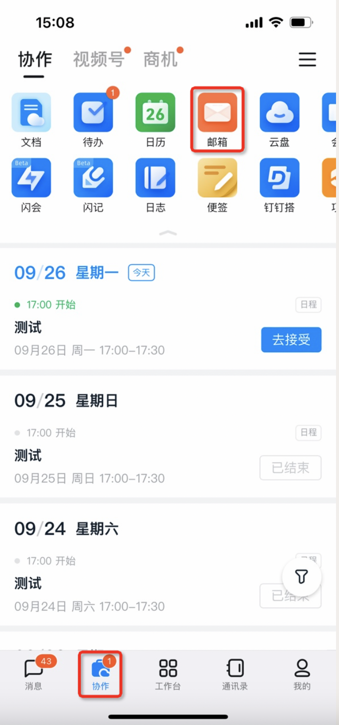 在首页快捷入口中找到企业邮箱并进入。