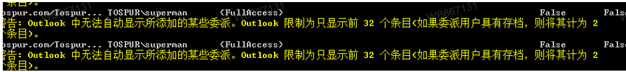 Q1:当进行superman授权访问用户邮箱时,提示无法自动显示所添加的某些委派。限制为显示前32个条目。这是什么原因?