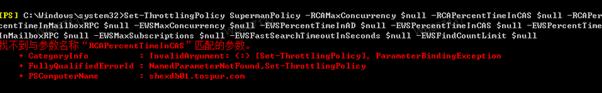 如找不到某些参数,会有如下报错(可查看所有策略参数 get-ThrottlingPolicy |fl ):