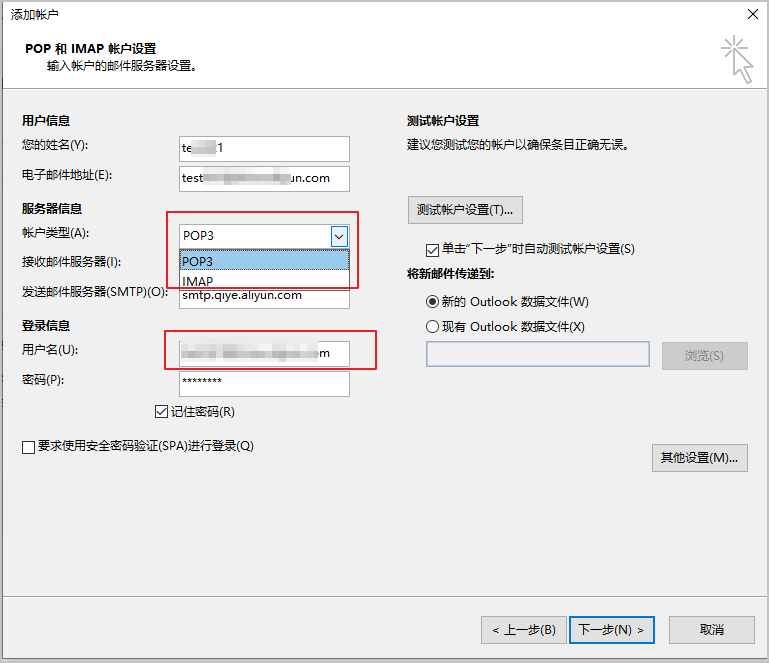 outlook配置阿里企业邮箱