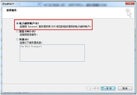 - 选择电子邮件账户,并单击下一步。