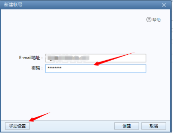 3.在新建账号的小窗口,输入正确的腾讯企业邮箱账号和密码后,再点击手动设置(如图三所示);