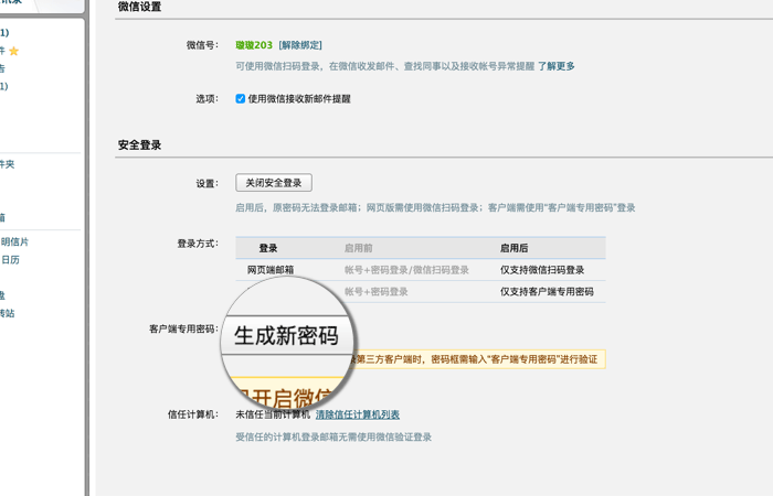 第三步:生成客户端专用密码,安全登录下面找到“客户端专用密码”,点击“生成新密码”