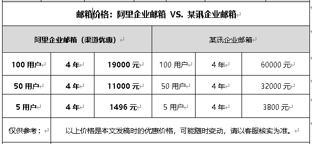 迁移,再额外赠送一年企业邮箱迁移补偿。也就是说,以5用户为例,只要花1496元,客户实际获得2+2+1共5年企业邮箱使用时长,实际年费是1496除以5只要299元!