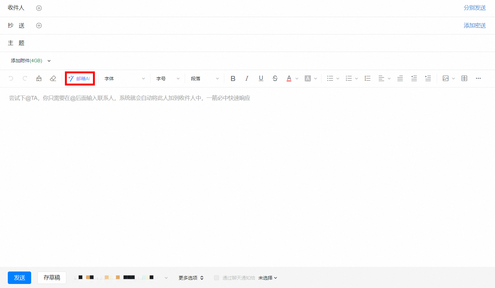 钉钉企业邮箱AI功能可谓是为企业提供了一种全新的写信方式,可以帮助你更加高效、专业地撰写邮件,提升工作效率和质量。