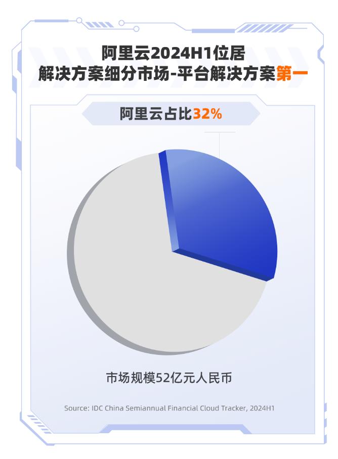 国际数据公司(IDC)发布了《中国金融云市场(2024上半年)跟踪》。据汇总计算,2024年上半年,中国金融云整体市场规模达317亿元人民币,阿里云以19%的市场份额位居第一,同比增长12%。这也是阿里云自2019H1-2024H1连续11期蝉联中国金融云市场整体第一。
