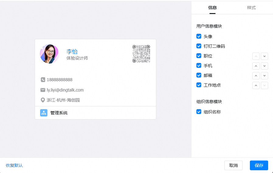 3、支持修改模板信息和样式。